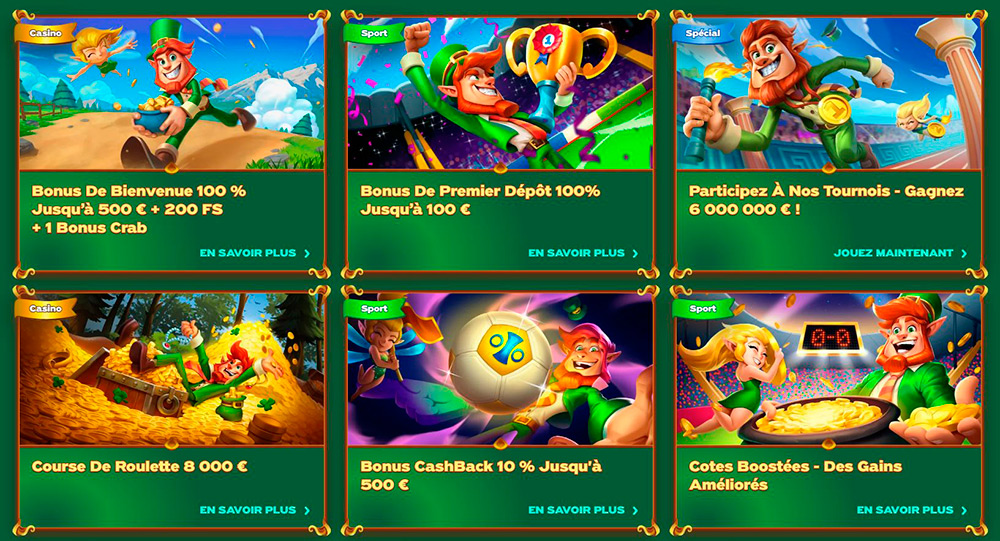 Comme d’autres casinos de la même société exploitante, Greenluck Casino propose à chaque joueur de prendre part au Bonus Crab, un jeu inhérent à la plateforme. Ce dernier permet de gagner des cadeaux, comme des tours gratuits, des paris gratuits, ou d’autres joyeusetés.